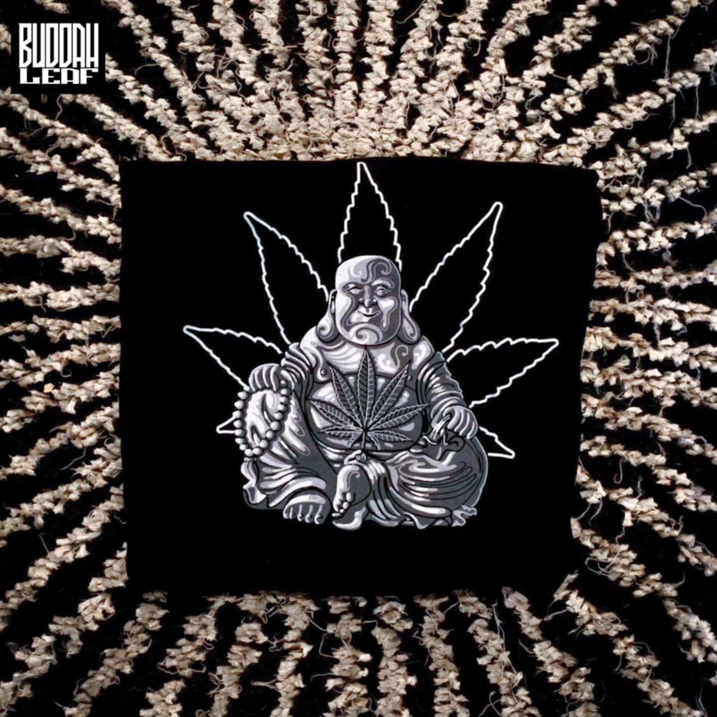 An assortment of t-shirt with BuddahLeaf logo.